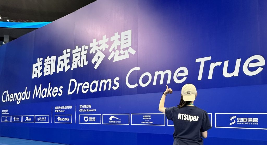 除了國內賽事的實作,團隊的學習視角也延伸至國際賽事現場。不論是巴黎奧運、德國世大運等大型賽會,運動傳播組的師生皆以實際參與的方式,練習在高強度時程與明確任務下完成內容產出。在有限時間內進行資訊判讀、畫面選擇與敘事判斷並不容易,卻是大學階段必須經歷的重要訓練。